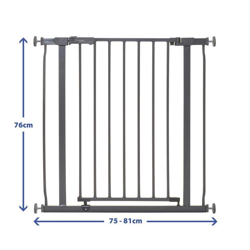 Ohranite svoj dom varen za otroke in hišne ljubljenčke z ograjo Dreambaby Ava. Trdna kovinska konstrukcija, tlačna namestitev brez vrtanja in odpiranje z eno roko zagotavljajo udobno vsakodnevno uporabo. Primerna je za odprtine 75–81 cm z možnostjo razširitve do 99 cm. Dvosmerno odpiranje, širok prehod in funkcija ostane odprta naredijo to ograjo za praktičnega pomočnika za vrata, hodnike in stopnice.