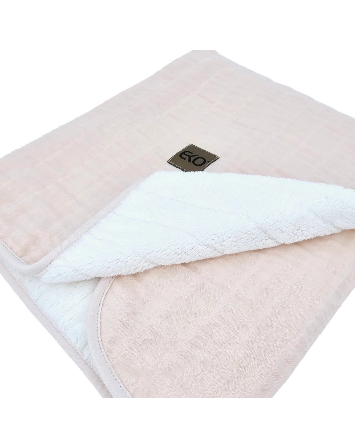 Ta muslinasta odeja EKO v nežnem rožnatem odtenku združuje naravni 100 % bombaž na zunanji strani in toplo krzneno (fleece) podlogo iz 100 % poliestra. Lahka, a učinkovita toplotna izolacija iz hipoalergenih vlaken zagotavlja prijetno toploto brez odvečnega bremena. Odeja je uporabna vse leto – doma, na poti in med sprehodi.