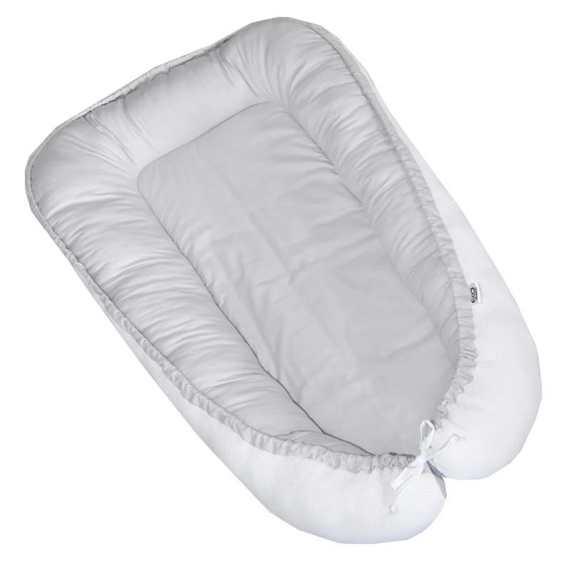 Dvostransko otroško gnezdece Eko White-Grey je odlična alternativa odejicam in povijalnikom. Dojenčku nudi udobje, varnost in občutek bližine zahvaljujoč zmanjšanemu prostoru in mehki polnitvi. Visoki robovi pomagajo ohraniti otroka v varnem položaju in olajšajo nameščanje na bok, kar boste posebej cenili pri težavah z refluksom.