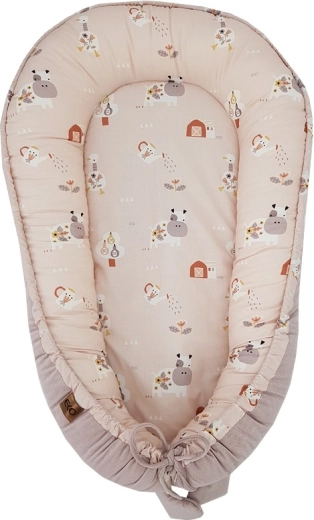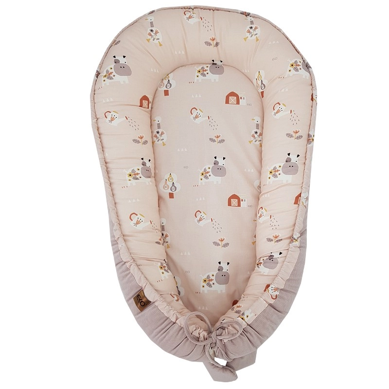 Privoščite dojenčku prijeten kotiček doma in na poti. Otroško gnezdece EKO Velvet My Farm v pudrasto rožnati barvi združuje mehak VELVET z zračnim bombažem. Visoki, mehko oblazinjeni robovi ustvarjajo varen prostor, ki pomaga dojenčku, da se počuti mirno in udobno.