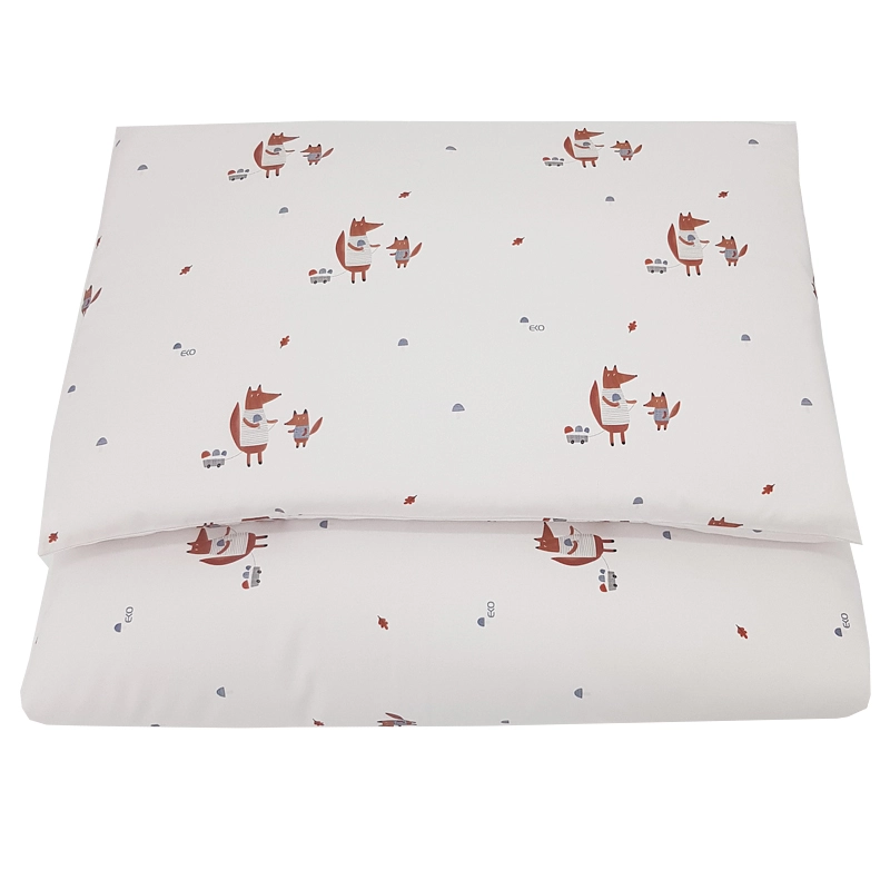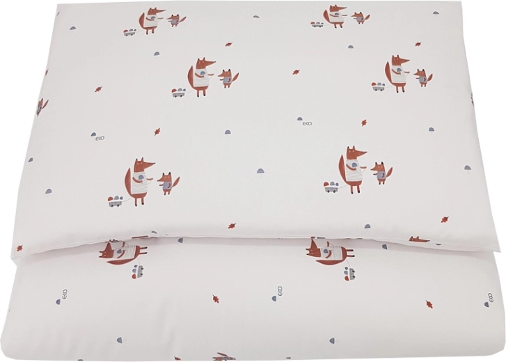 Ljubka otroška posteljnina z motivom lisic iz 100 % bombaža zagotavlja mehko, zračno in udobno spanje. Komplet vsebuje prevleko za odejo 90 × 120 cm in prevleko za vzglavnik 40 × 60 cm, idealno za otroško posteljico.