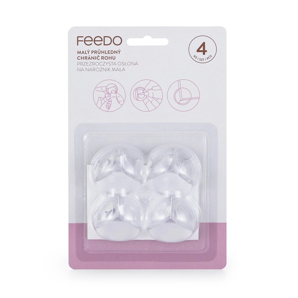 Zaščite za vogale učinkovito blažijo udarce in pomagajo preprečiti poškodbe ob stiku z ostrimi robovi pohištva. Zaradi prozorne izvedbe se naravno zlijejo z notranjostjo, zato ne motijo videza pohištva. Preprosto jih nalepite na vogal in končano – brez vrtanja, brez orodja, brez nereda.