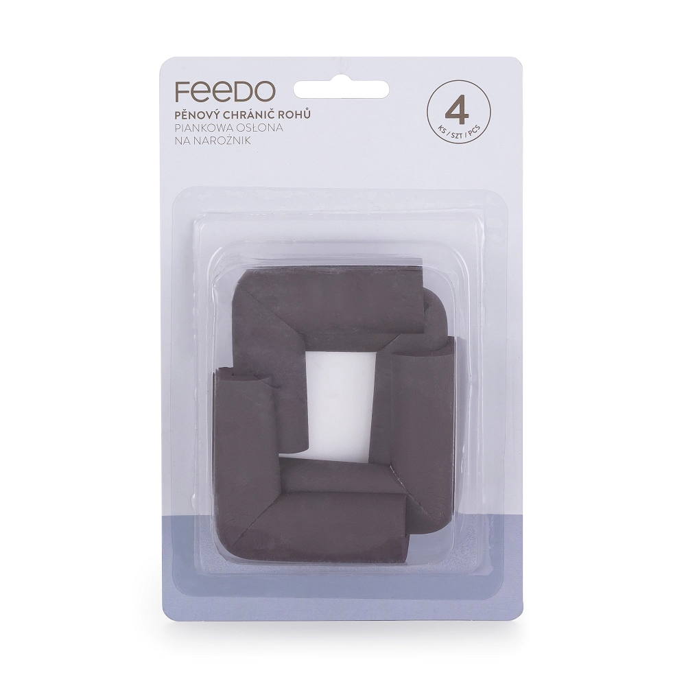 Varnost otrok na prvem mestu – mehki penasti ščitniki za vogale Feedo pomagajo preprečevati boleče udarce ob ostre robove pohištva. Zaradi rjave izvedbe se lepo zlijejo s temnejšimi površinami in ne kvarijo videza notranjosti.
