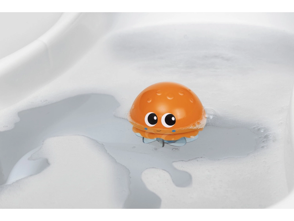 Odkrijte vodno zabavo z meduzo, ki vsako kopanje spremeni v vesele trenutke. Zaradi intuitivne oblike jo otroci zlahka primejo, preprosta mehanska funkcija vrtenja lovk pa v vodi ustvari privlačen ples. Igrača spodbuja fino motoriko, koordinacijo oko–roka ter razumevanje vzroka in posledice.