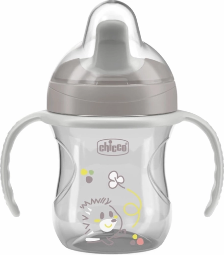 Olajšajte prehod iz stekleničke na lonček z CHICCO Training. Polimehek ustnik je oblikovan za pravilno namestitev ustnic in podporo optimalnemu položaju vratu med pitjem. Odstranljivi ergonomski ročaji in telo z nežnim izrezom za nos zagotavljajo udoben oprijem tudi za najmanjše rokice.