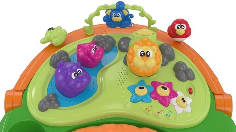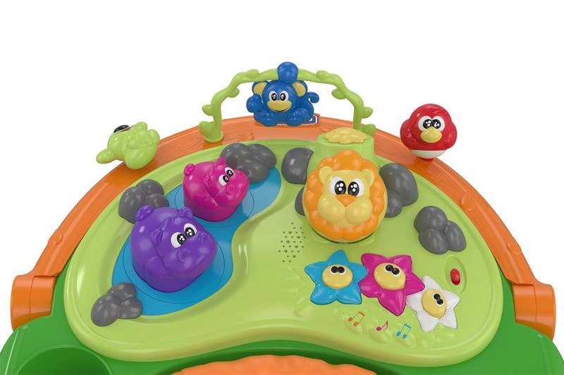Vgrajen aktivnostni igralni panel podpira razvoj fine motorike in čutnega zaznavanja. Mehak, udoben sedež ter kompaktno zlaganje olajšata shranjevanje in prevoz. Nosilca za pijačo na obeh straneh poskrbita za prijetnejšo daljšo igro in raziskovanje.