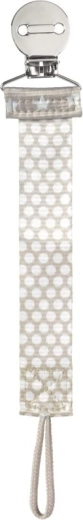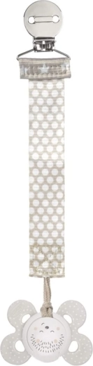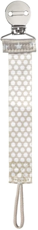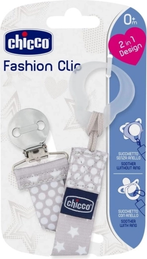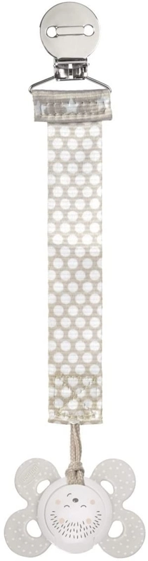 Sponka za dudo Chicco Fashion neutral je praktičen pripomoček, ki preprečuje izgubo in padanje dude na tla. Mehak tekstilni trak v nevtralni zasnovi je prijeten na dotik in zahvaljujoč obojestranskemu potisku izgleda odlično z vsake strani. Inovativna zasnova omogoča hitro in zanesljivo pripenjanje na večino dud.