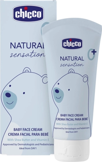 Nežna krema CHICCO Natural Sensation cel dan ščiti občutljivo otroško kožo obraza. Nudi 24-urno aktivno zaščito pred mrazom, vetrom in smogom, pomirja rdečico zaradi hrane ali sline in je primerna od rojstva. Vsebuje karitejevo maslo za obnovo kožne bariere in vitamin E za zaščito in pomiritev. Ima lahko, hitro vpojno in nemastno teksturo.