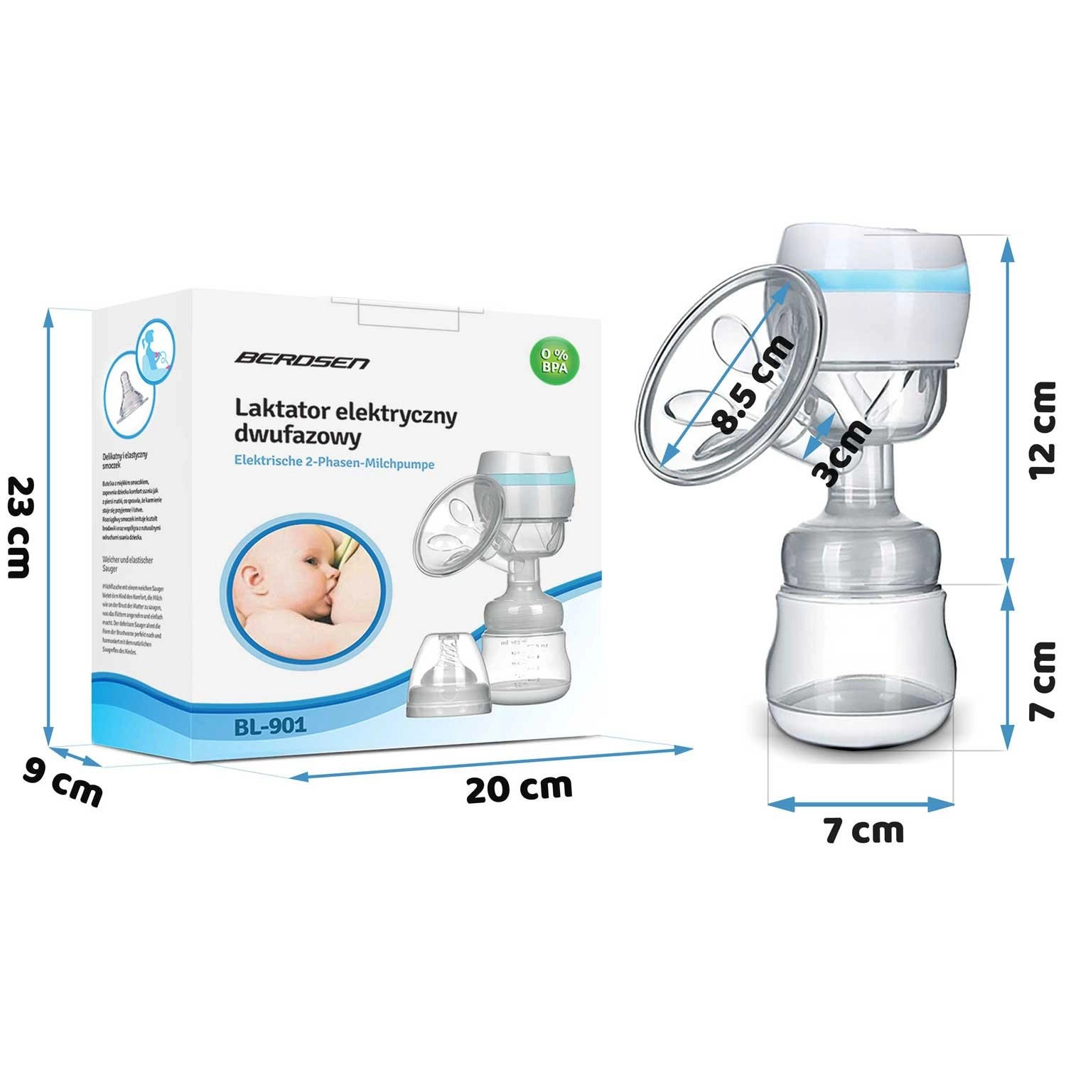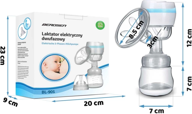 Prsna črpalka Berdsen je zasnovana za maksimalno udobje in učinkovitost. Dve fazi – stimulacija in globoko sesanje – posnemata naravni potek dojenja ter pomagata zagnati in ohranjati laktacijo. Mehki silikonski masažni nastavek se nežno prilega in poveča udobje brez bolečega pritiska.