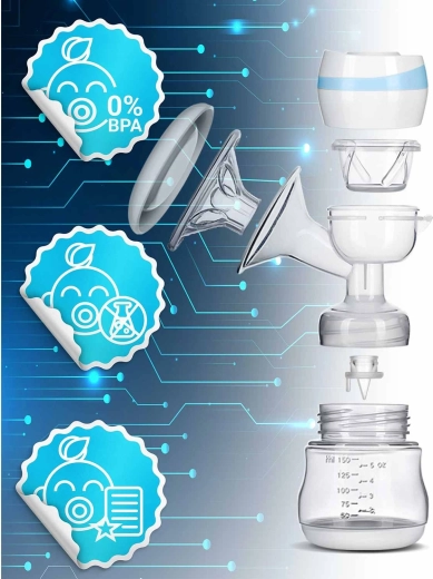 Zaradi tihega delovanja, brezžičnega načina in USB polnjenja je idealna za dom in potovanja. Velik LCD-zaslon jasno prikaže nastavitve načinov, stopnje moči in stanje baterije. Vsi deli, ki pridejo v stik z mlekom, so BPA free in se enostavno razstavijo za temeljito čiščenje.