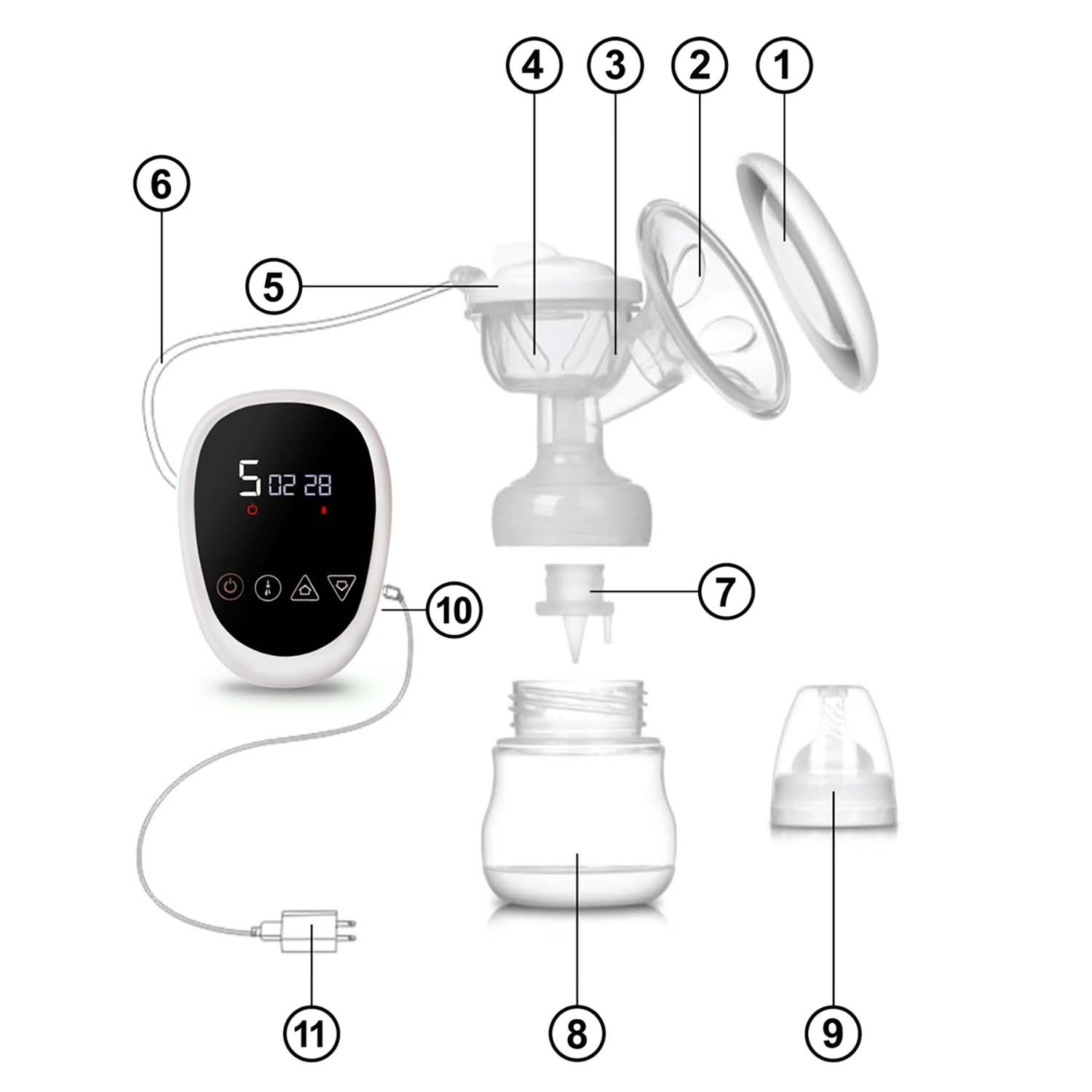 Upravljanje je intuitivno zahvaljujoč preglednemu LCD-zaslonu, na katerem zlahka izberete način, prilagodite intenzivnost ali preverite stanje baterije. Tih tek, napajanje iz omrežja in prek USB ter lahka, razstavljiva zasnova zagotavljajo higieno, mobilnost in enostavno čiščenje. Vsi deli, ki prihajajo v stik z mlekom, so brez BPA.