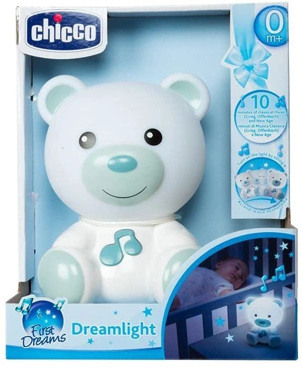 Spremenite večerno uspavanje v prijeten ritual. Medvedek Chicco nežno osvetli otroško sobico in ustvari občutek varnosti. Dovolj je, da ga prevrnete, in zasije s prijetno svetlobo, ki ne moti spanca. Za še boljše umirjanje lahko vključite do 10 minut pomirjujočih melodij.