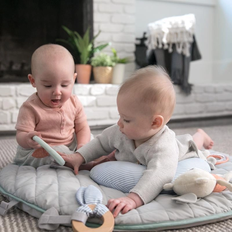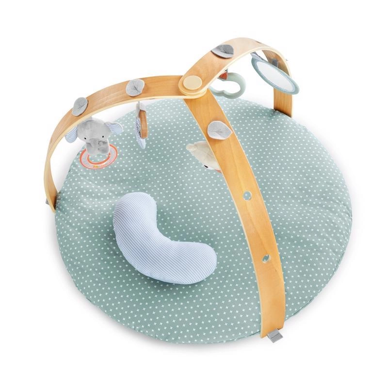 Igralna podloga Loamy vsak kotiček doma spremeni v prijeten in stilski igralni prostor že od rojstva. Mehka, obojestranska podloga z nežnim vzorcem ter dva prekrižana loka z naravnim videzom lesa očarata na prvi pogled, medtem ko viseče igrače, grizalo in varnostno ogledalce spodbujajo dojenčka k stezanju, prijemanju in odkrivanju lastnega odseva.