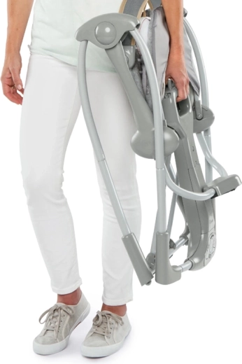 Zložljiva konstrukcija omogoča, da gugalnico hitro pospravite in prenesete z eno roko – idealno za potovanja in varčevanje s prostorom doma.