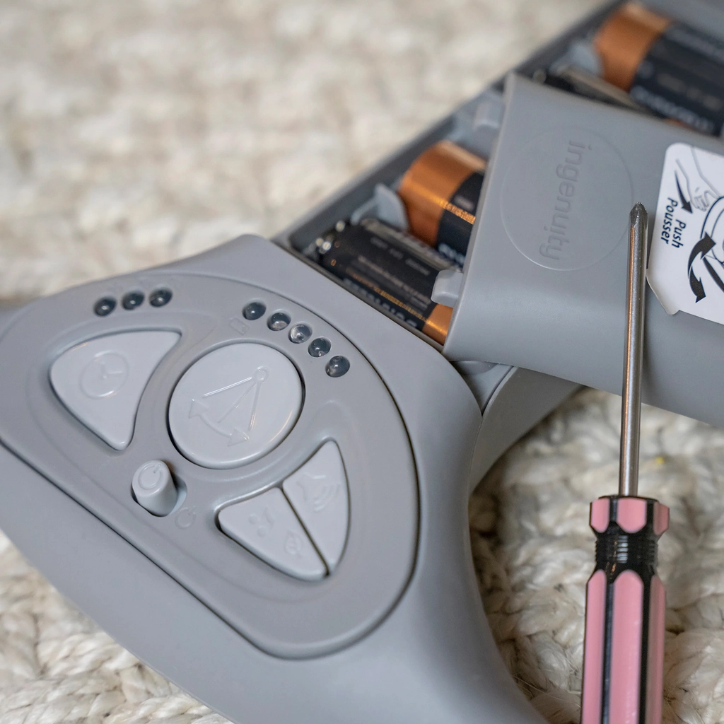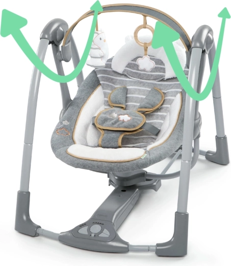 Gugalnico zlahka zložite na kompaktno velikost za prenašanje ali shranjevanje, stabilna konstrukcija pa omogoča udobno potovanje. Potrebne so le 4 baterije tipa D in že lahko uživate v mirnih trenutkih doma in na poti.