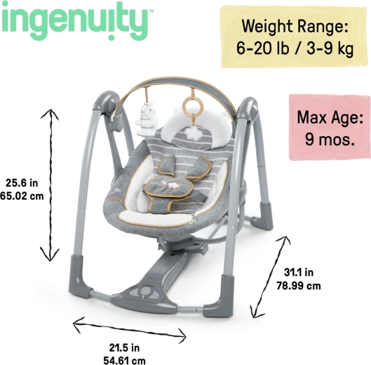 Ingenuity Bella Teddy je potovalna gugalnica, zasnovana za udobje dojenčka in preprostost za starše. Zahvaljujoč tehnologiji Hybridrive baterije zdržijo dlje, medtem ko zaznavanje teže samodejno ohranja izbrano hitrost guganja, ko otrok raste. Nežen, nevtralen dizajn je idealen tako za deklice kot za dečke in je odlična izbira kot darilo ob rojstvu.