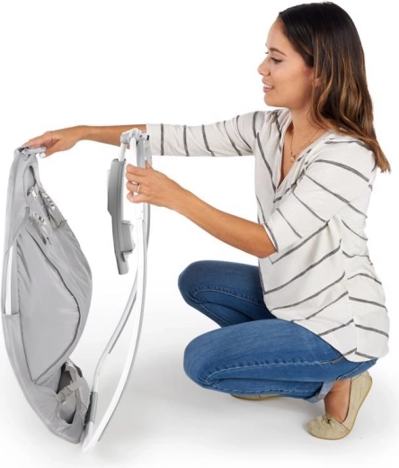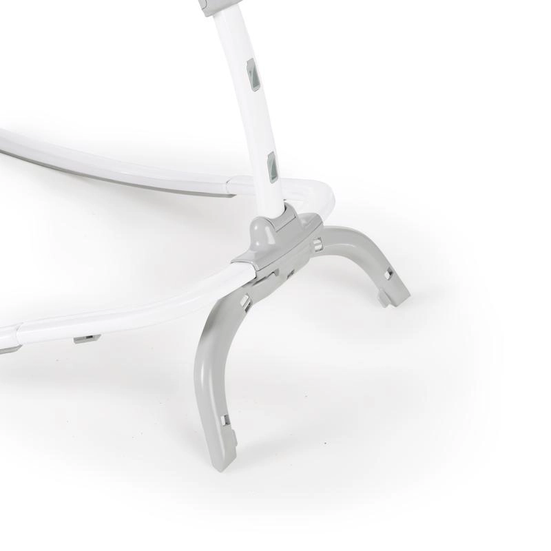 Zaradi tankega zložljivega okvirja gugalnik hitro zložite skoraj povsem na ravno – idealno za prihranek prostora doma in na potovanjih. Odstranljiv vrtiljak z dvema plišastima igračama spodbuja čute in zabava; igrače lahko kadar koli snamete za samostojno igro. Pettočkovni pasovi in stabilna konstrukcija zagotavljajo mirno in varno uporabo.
