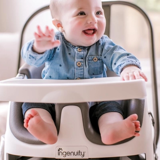 Ingenuity Baby Base 2v1 je pametna rešitev za vsakodnevno obedovanje in prosti čas. Podstavek z udobno penasto blazino in oporo za hrbet zagotavlja otrokom od 6 mesecev stabilno in ergonomsko sedenje. Vgrajeni pladenj se enostavno namesti, ko pa ni potreben, se praktično pospravi pod sedež, zato imate vse pri roki in ničesar ne izgubite.