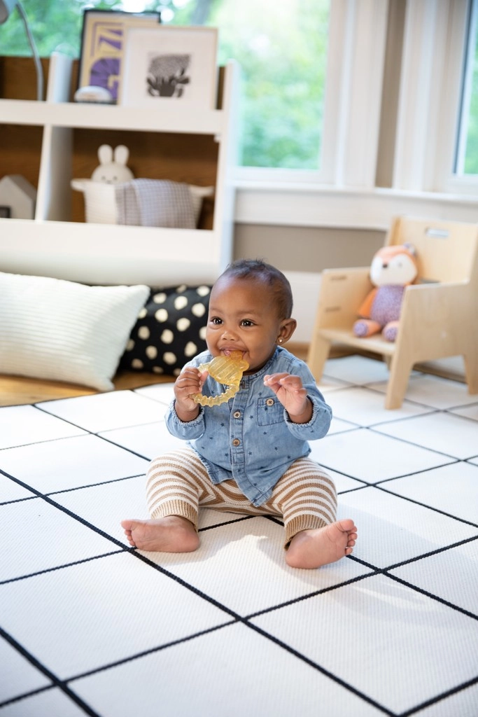 Olajšajte dojenčku izraščanje zob z grizalom Ingenuity Bomby 3m+. Zahvaljujoč polnilu iz destilirane vode lahko grizalo za dodatni hladilni učinek ohladite v hladilniku. Številne teksture masirajo dlesni, brez BPA zagotavlja varno grizenje in enostavno oprijemljiva oblika se prilega majhnim rokam.