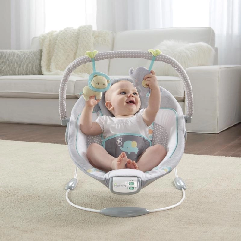 Ležalnik Ingenuity Morrison je zasnovan za mir in dobro počutje dojenčka ter vaše udobje. Mehko oblazinjenje s semišasto prevleko, odstranljiv oporni vzglavnik za glavo in stranske opore zagotavljajo ergonomski in podporen položaj. Pomirjujoče vibracije in 7 melodij z nastavljivo glasnostjo pomagajo dojenčka umiriti in uspavati, pri čemer se časovnik po 15 minutah samodejno izklopi.