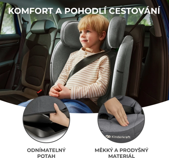 Avtosedež Kinderkraft Oneto3 i-Size raste z vašim otrokom od 76 do 150 cm. Izpolnjuje najnovejši standard R129 i-Size in temelji na nagrajenem modelu ONETO3 (ADAC). Zahvaljujoč ISOFIX in TOP TETHER ga namestite hitro in pravilno – indikatorji montaže pomagajo preprečiti napake. Večje otroke lahko pripnete s 3-točkovnim varnostnim pasom vozila, z možnostjo uporabe tudi brez ISOFIX-a.