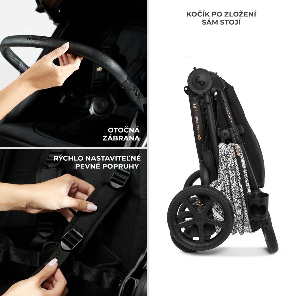Kolekcija Bizuu združuje slog in funkcionalnost: voziček Kinderkraft Mitzy v omejeni izdaji Bizuu izstopa z elegantnim videzom in premišljenimi detajli. Dolg XL sedež zagotavlja prostor in udobje tudi za večje otroke, gladko in tiho nastavljanje naslonjala ter 3-stopenjsko nastavljanje opore za noge prinašata idealen položaj za spanje in opazovanje okolice. Starši bodo cenili 3-stopenjsko nastavljiv ročaj in lahek okvir za preprosto upravljanje.
