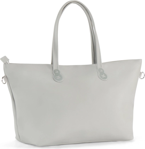 Zahvaljujoč posebnim nastavkom torbo enostavno pritrdite na ročaj vozička ali jo nosite na rami z dolgim paščkom.