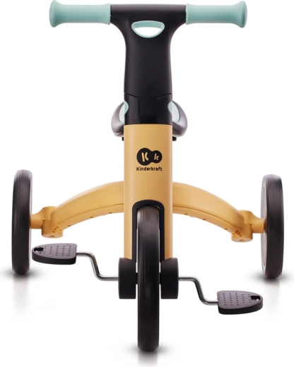 Kinderkraft 4TRIKE Sunflower Blue je premišljeno otroško vozilo, ki združuje mini kolo–poganjalec na treh kolesih, mini poganjalec in trikolo s pedali. Zahvaljujoč hitremu preklapljanju funkcij brez orodja se v trenutku prilagodi sposobnostim malega kolesarja. Aluminijast okvir zagotavlja nizko težo in vzdržljivost, medtem ko kompaktna zložljiva konstrukcija omogoča enostavno prenašanje in shranjevanje v košari vozička.