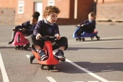 Podpira razvoj ravnotežja in koordinacije, primerno za dom, vrtce in igralnice na gladkih površinah.