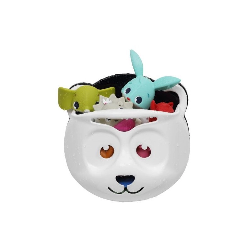 Spremenite pospravljanje po kopanju v igro. Organizator v obliki pande sprejme majhne kopalne igrače in dodatke, ki jih po kopeli preprosto odložite vanj. Zahvaljujoč premišljenim drenažnim odprtinam voda hitro odteče in igrače se bolje posušijo. Priseski omogočajo enostavno, brezvrtalno pritrditev na gladke površine, po želji pa lahko nosilec namestite tudi trajno s pomočjo sider.