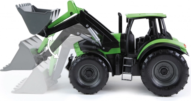 Robusten otroški traktor s čelno žlico v dizajnu DEUTZ FAHR Agrotron navduši z realističnim izdelavo v merilu 1:15. Ima funkcionalno sprednjo žlico, izdelan je iz kakovostne plastike in je primeren tako za igro doma kot na prostem. Dolžina 45 cm.