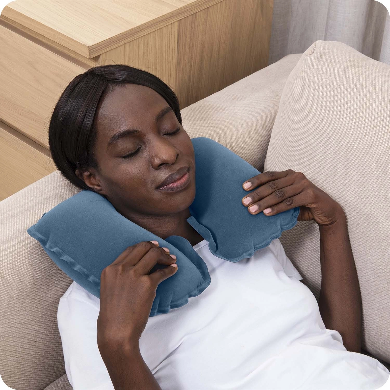 U-oblikovan dizajn stabilizira glavo in zmanjšuje napetost v predelu vratu, kar boste cenili na letalu, v avtomobilu ali v šotoru.