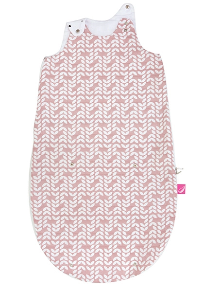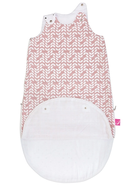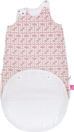 Premišljene podrobnosti, kot so pritiskači na ramenih za zmanjšanje odprtine pri vratu in spodnji podaljševalni del na pritiskače, omogočajo uporabo v dveh velikostih: 3–6 mesecev pri zapetem spodnjem delu in 6–18 mesecev pri odprtem. Žakelj je sešit iz treh plasti 100% bombažnega muselina brez polnila – mehak, puhast in nežen do občutljive kože.