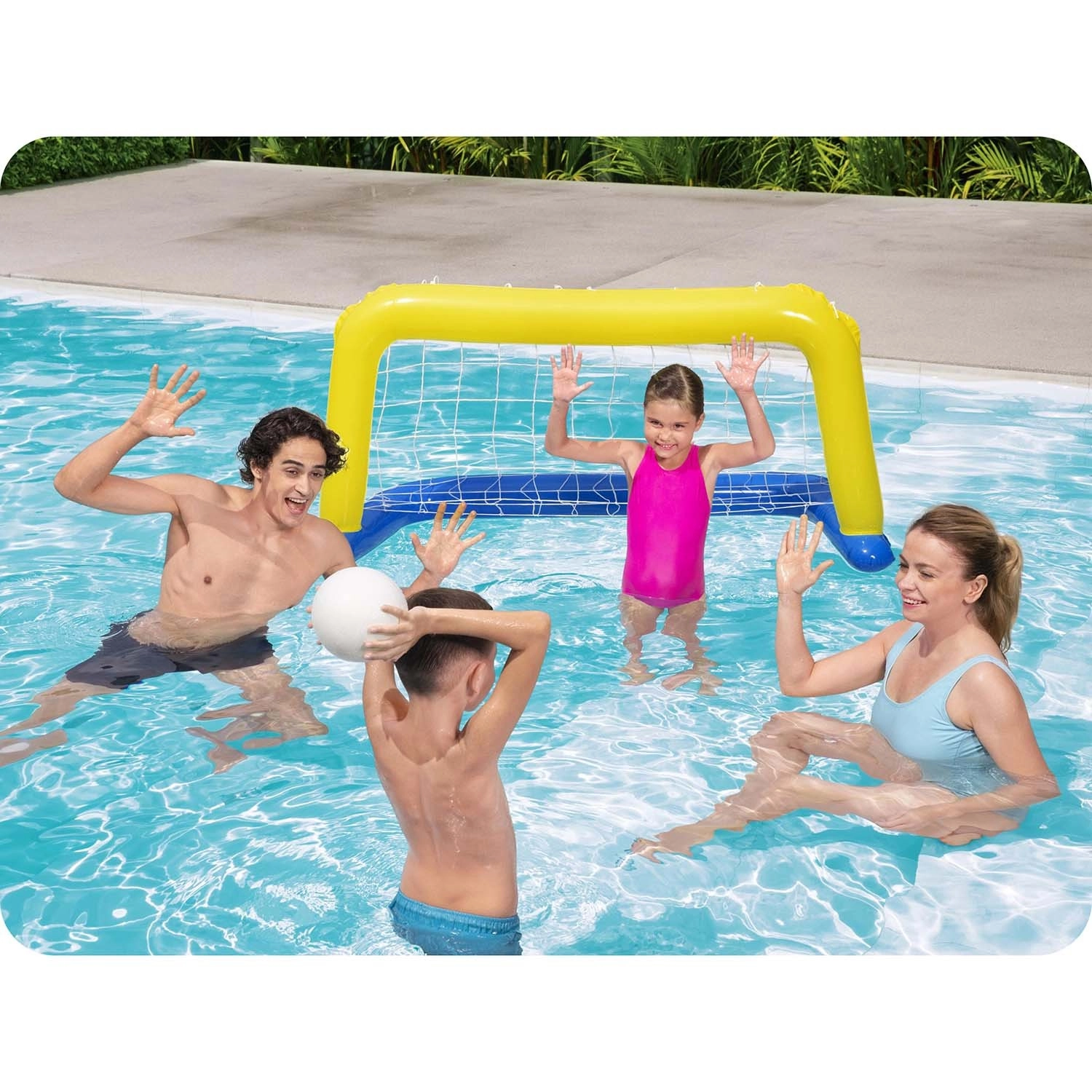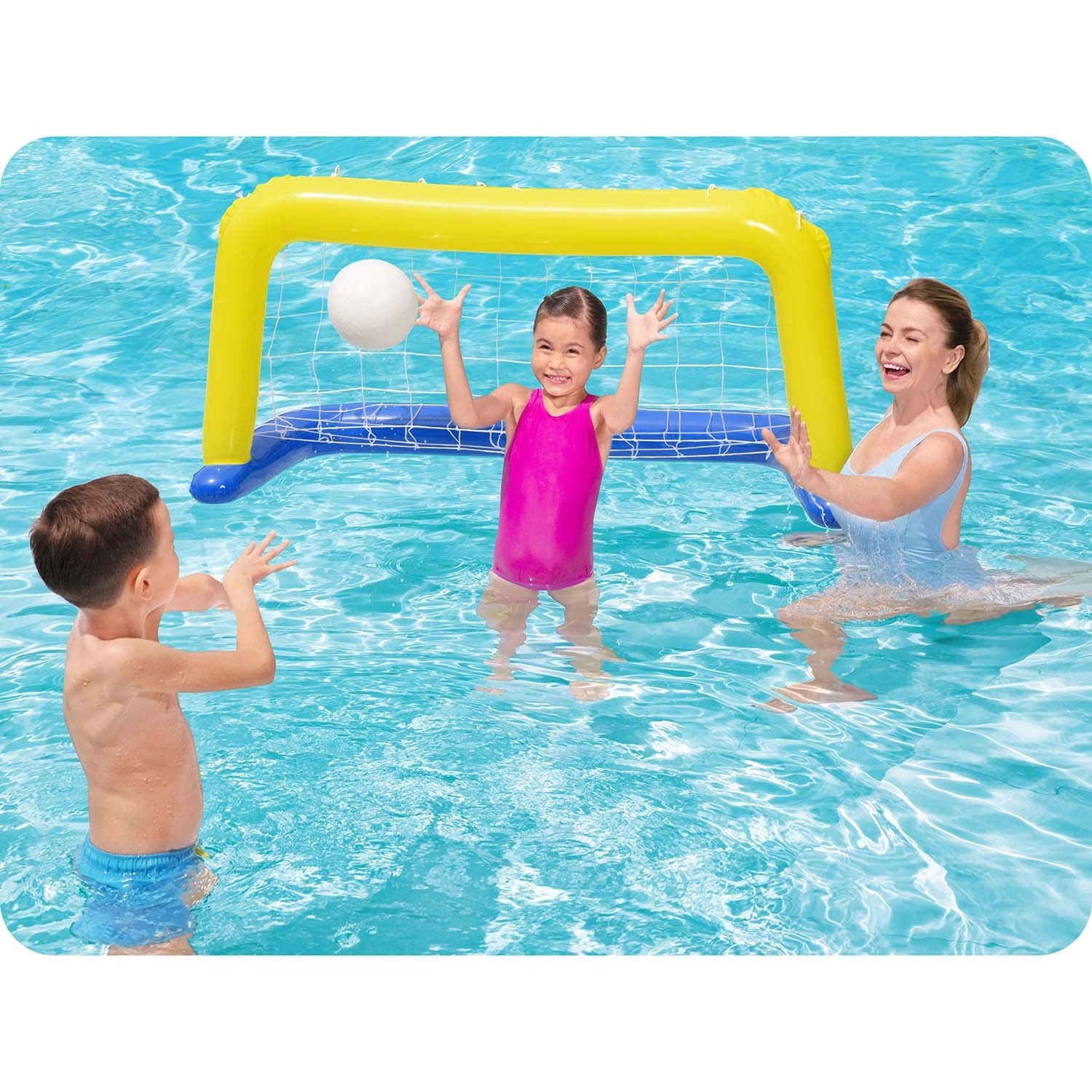 Ta nafukljiv gol Bestway spremeni vsak bazen v igrišče polno zabave. V paketu je tudi lahka nafukljiva žoga, zato lahko začnete igrati takoj. Gol je izdelan iz trpežnega vinila (PVC) in opremljen z odporno najlonsko mrežo, ki zanesljivo ujame vsak zadetek.