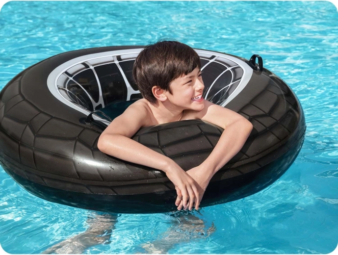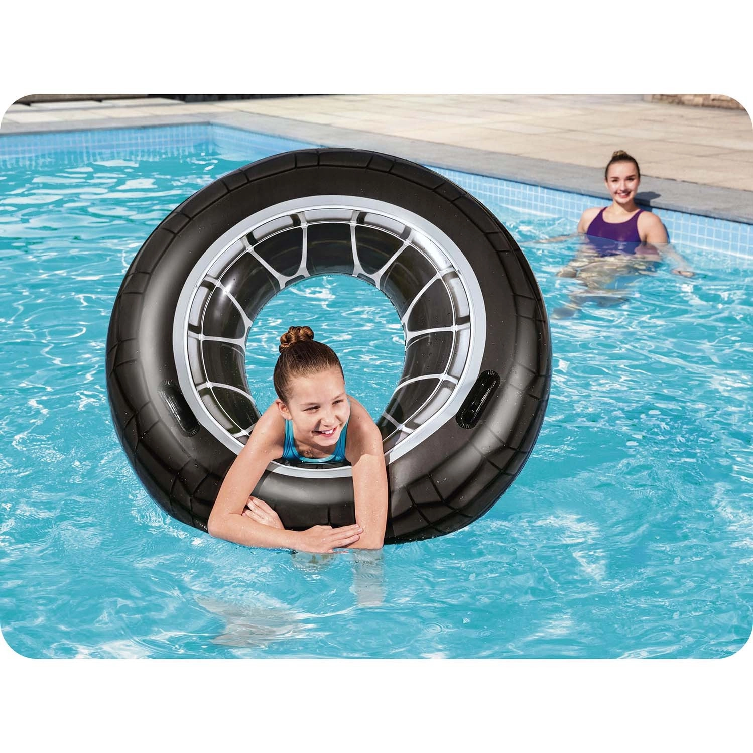 Ta oblikovalski plavalni krog z realističnim potiskom pnevmatike je odlična izbira za sproščeno poležavanje in zabavne vodne vragolije. Velik premer 119 cm zagotavlja udoben prostor in izvrstno vzgonsko podporo za mladostnike in odrasle uporabnike.