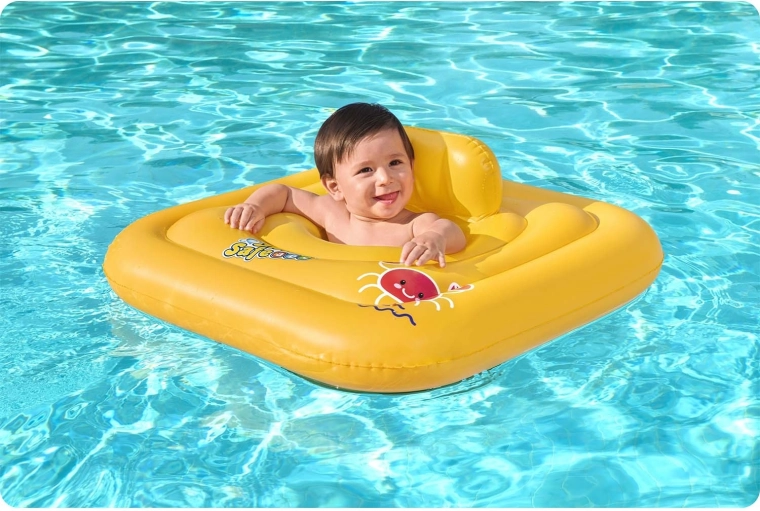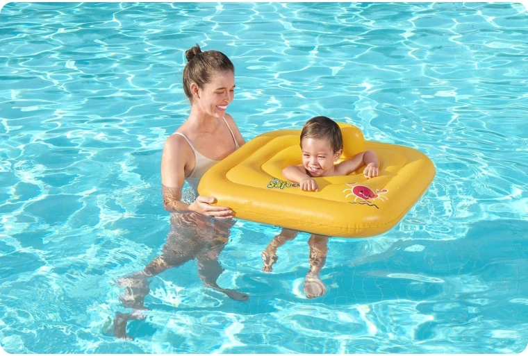 Otroku omogočite prve vodne radosti varno in udobno. Kvadratni plovec s sedežem je zasnovan za malčke od približno 1 leta in nudi zanesljivo oporo vzgona ter stabilnost na gladini. Zahvaljujoč integriranemu naslonu otrok sedi udobno in pravilno, medtem ko globok sedež z odprtinami za nogice preprečuje zdrs v vodo.