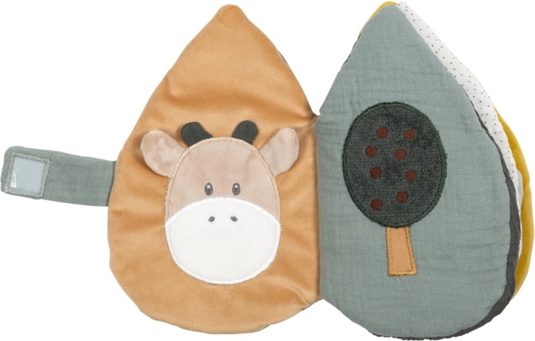 Mehka izobraževalna blago knjižica znamke Nattou ponuja varno ogledalce, različne teksture in živalske motive za naravno raziskovanje sveta. Je lahka, dobro oprijemljiva in podpira razvoj fine in grobe motorike, vida ter tipa. Idealna za igro doma in na poti.