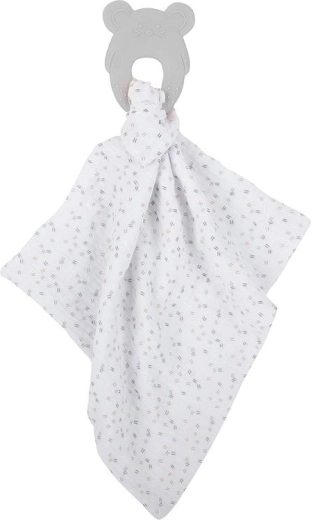 Privoščite svojemu dojenčku nežno nego z grizalom NATTOU in mehko muslinasto krpico. Silikonsko grizalo z prijetno mat teksturo masira in pomirja dlesni, medtem ko krpica iz 100% bombaža nudi mehak dotik in tolažbo. Praktična odprtina v kotu krpice omogoča hitro pripenjanje in snemanje grizala za enostavno čiščenje.