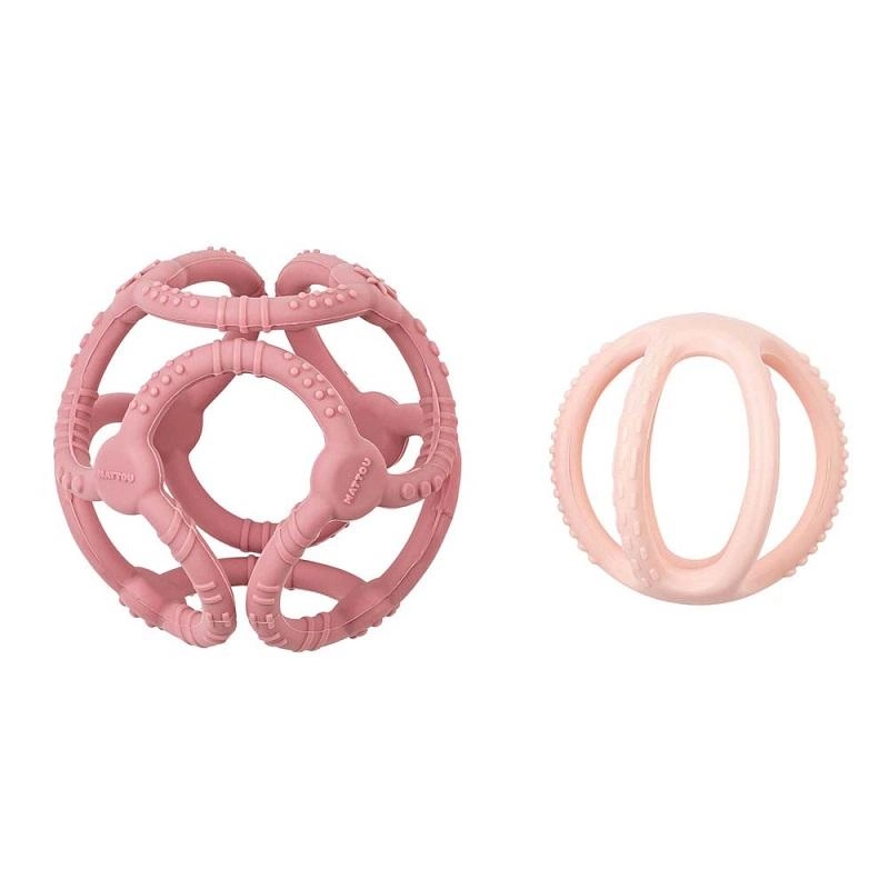 Odkrijte nežno in varno grizalo NATTOU v obliki dveh žogic, ki ju je mogoče uporabljati skupaj ali ločeno. Različne teksture spodbujajo tip in pomagajo pomiriti razdražene dlesni, medtem ko lahka in prožna konstrukcija olajša prijem tudi najmanjšim ročicam.