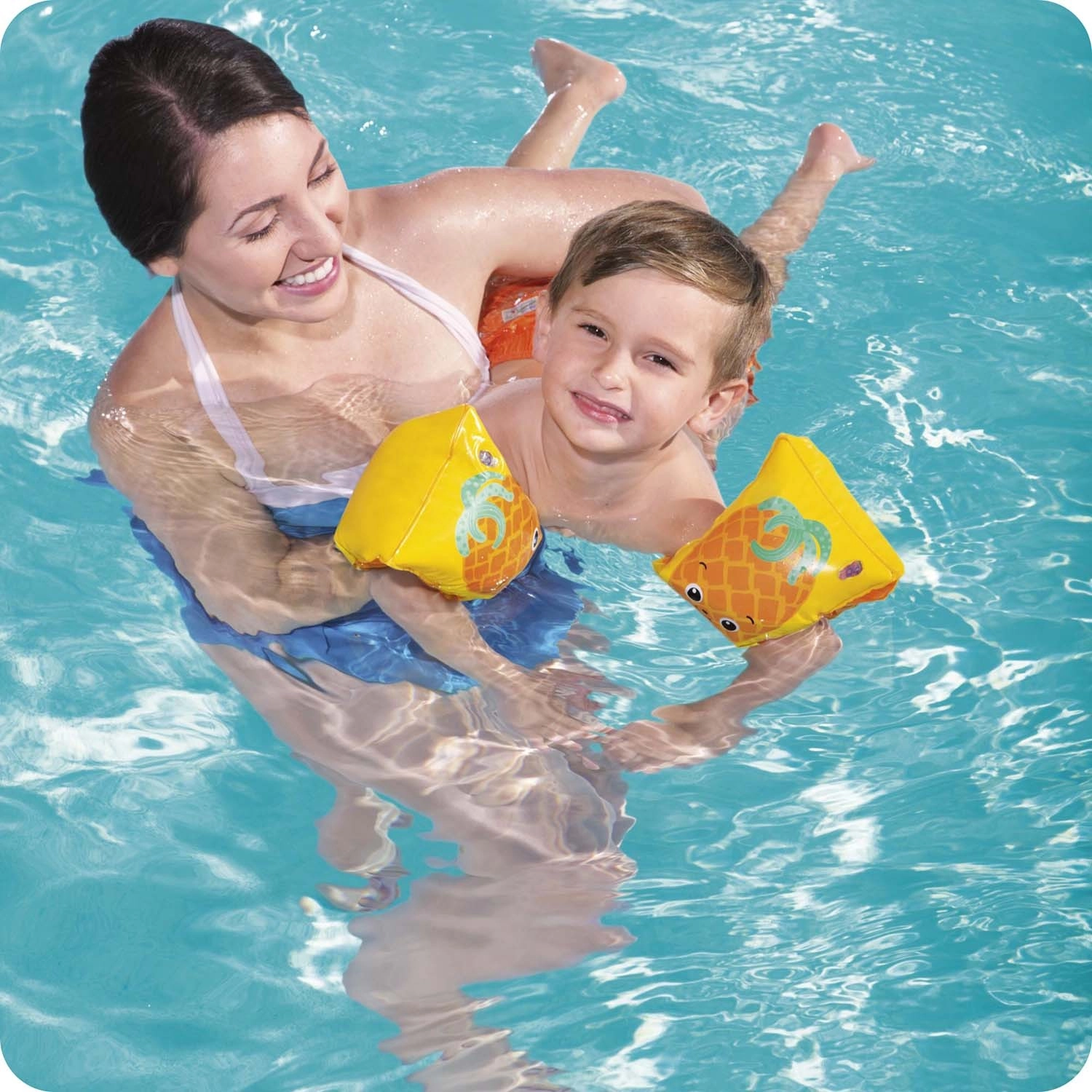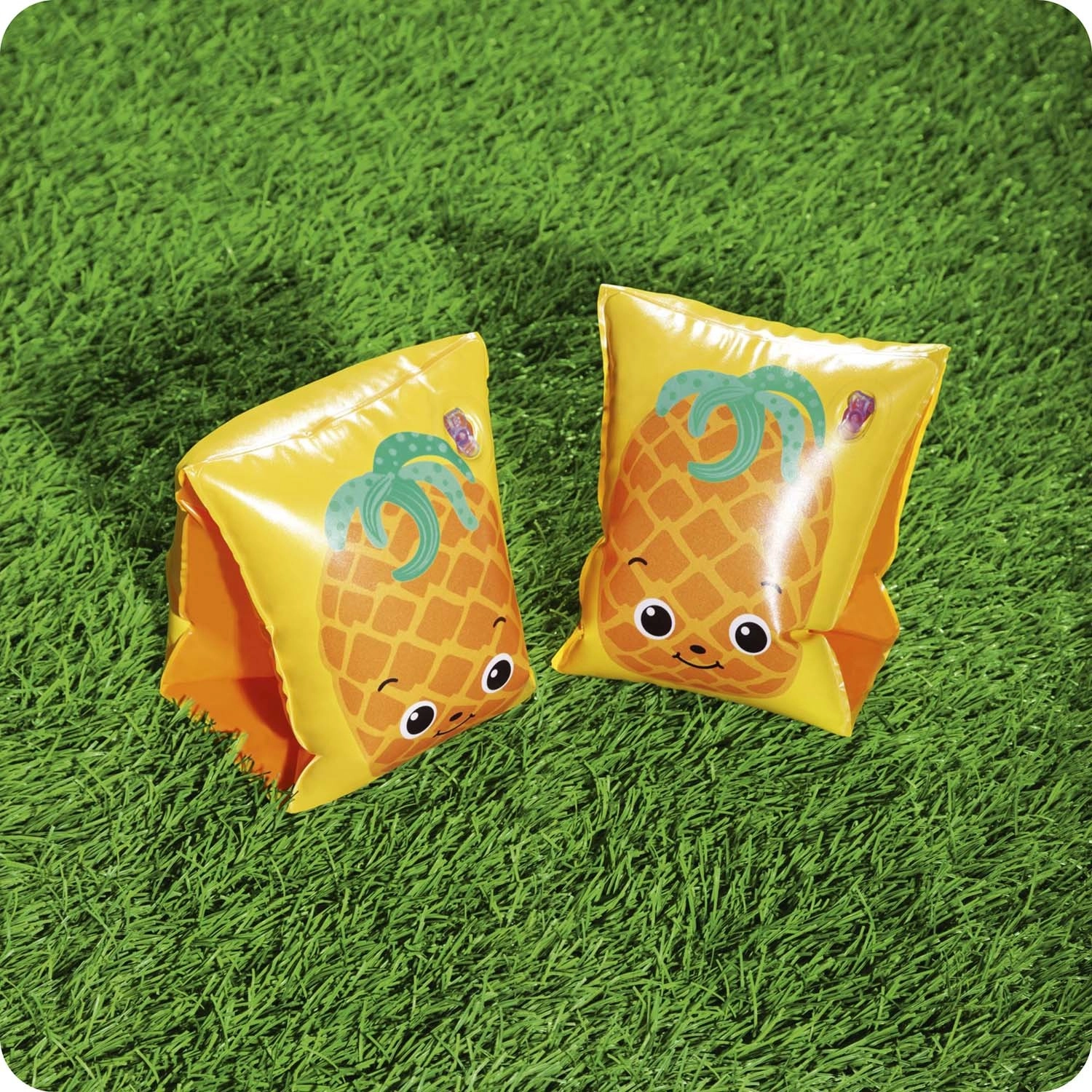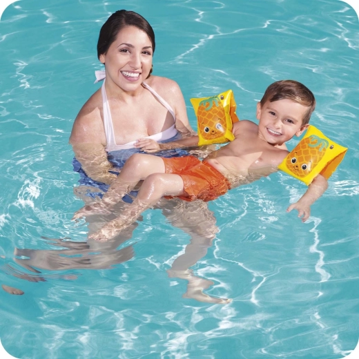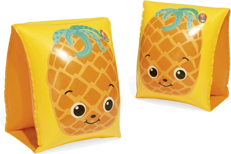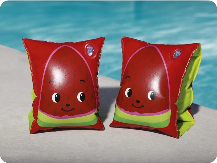 Odkrijte zabavo v vodi z napihljivimi rokavčki BESTWAY v sadnem dizajnu. Dve neodvisni komori povečujeta varen vzgon in udobje, medtem ko igrivi motivi lubenice in ananasa motivirajo otroke k učenju plavanja in igri v vodi.