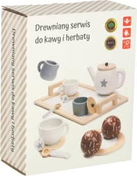 Stilski leseni čajni servis za otroke prinaša ure kreativne igre in igralnih vlog. Vsebuje pladenj, čajnik s pokrovom, skodelice s krožnički, sladkornico, mlečnik, žličke in lesene dobrote. Gladko brušen les je varen za otroke ter vabi k skupni igri in razvoju fine motorike.