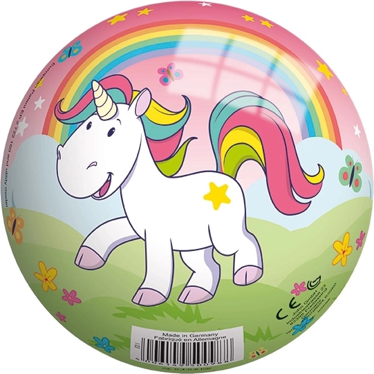Kakovostna PVC žoga z motivom samoroga s premerom 130 mm.