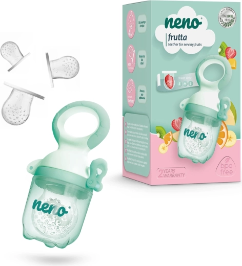 Neno Frutta je pametna rešitev za uvajanje goste hrane – od prvih koščkov sadja in zelenjave do kašaste hrane. Mehka silikonska mrežica prepušča le drobne koščke, zato dojenček nove okuse raziskuje varno in brez stresa. Antibakterijski pokrov ohranja nastavek higiensko čist doma in na poti.
