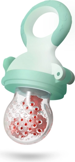 - Duda s silikonsko mrežico za varno ponujanje sadja in zelenjave; grizalo