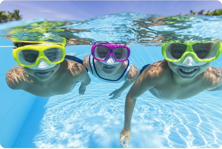 Z nastavljivim silikonskim paščkom maska med plavanjem in vodnimi igrami sede trdno in varno. Univerzalna otroška velikost brez lateksnih sestavin je idealna izbira za občutljivo kožo in vsakodnevno vodno zabavo.