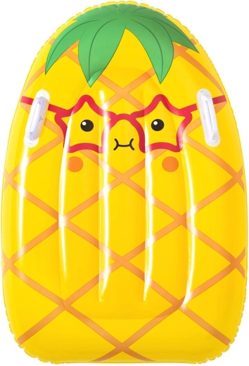 Ta lahka in enostavno prenosna napihljiva deska je idealna za bazen in počitnice. Barviti motivi kivi, ananas ali jagoda bodo razveselili otroke in pritegnili pozornost, medtem ko dva trpežna ročaja pomagata ohranjati ravnotežje in vlivati samozavest pri plavanju.