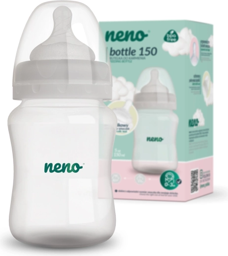 Praktična dojenčka steklenička Neno s prostornino 150 ml je idealna od prvih dni življenja. Ponuja mehko silikonsko cuclo za naravno sesanje, antikolični dizajn za zmanjšanje zaužitega zraka in je izdelana iz materialov brez BPA, varnih za novorojenčke. Popolnoma kompatibilna z Neno prsnih črpalkami za enostavno hranjenje in shranjevanje materinega mleka.