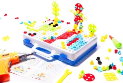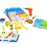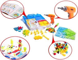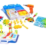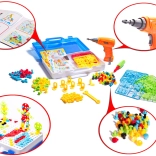 Fantastičen komplet za malega mojstra! Seta vsebuje 237 delov, ki omogočajo ustvarjanje različnih oblik in modelov. Otroci se lahko igrajo s pisano obarvanimi vijaki in s pomočjo vrtalnika preizkusijo, kako je biti pravi graditelj.