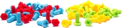 Set vsebuje pisane vijake in dele, ki otrokom vzbujajo zanimanje in pomagajo razvijati njihove motorične spretnosti.