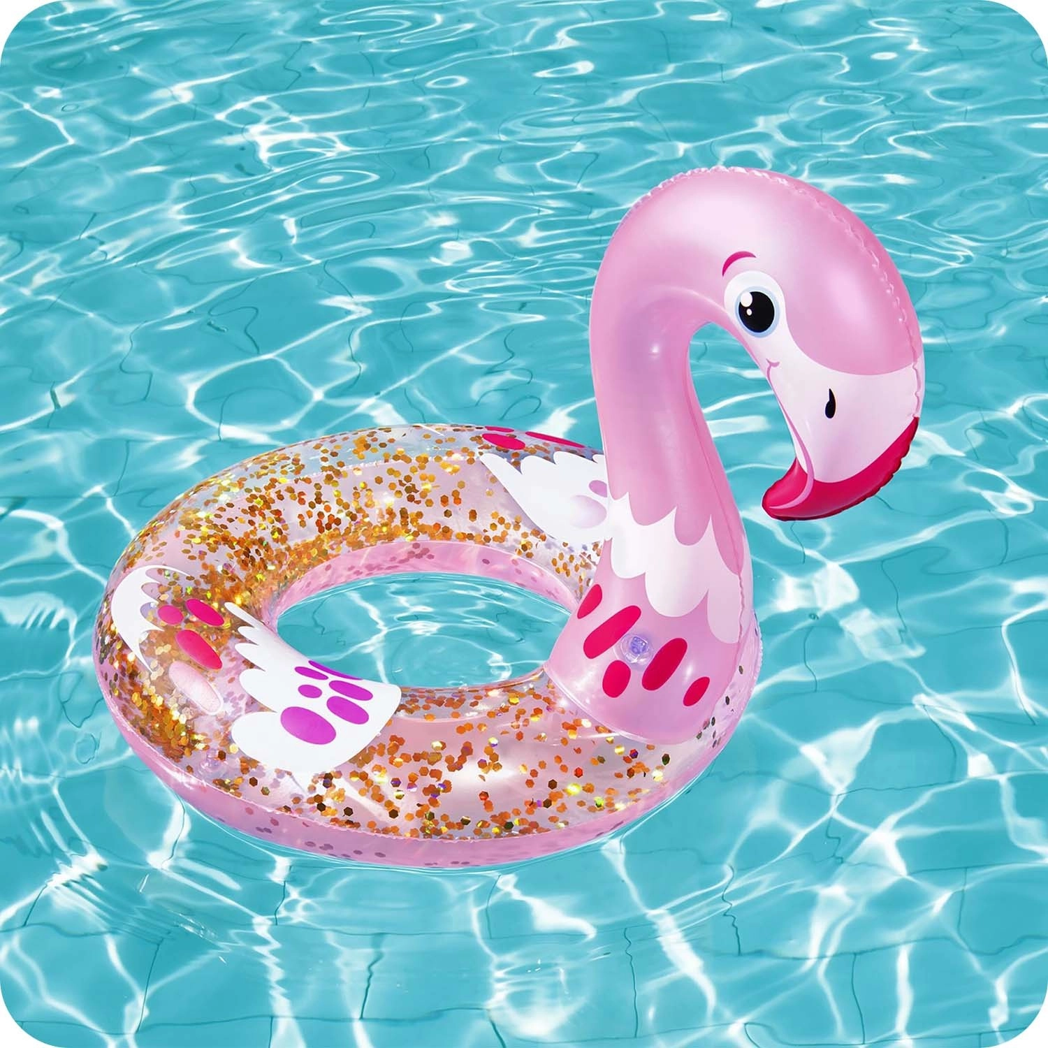 Prozoren obroč z vstavljenimi bleščicami ustvarja v vodi in na soncu čudovite odseve, ki jih imajo otroci radi.